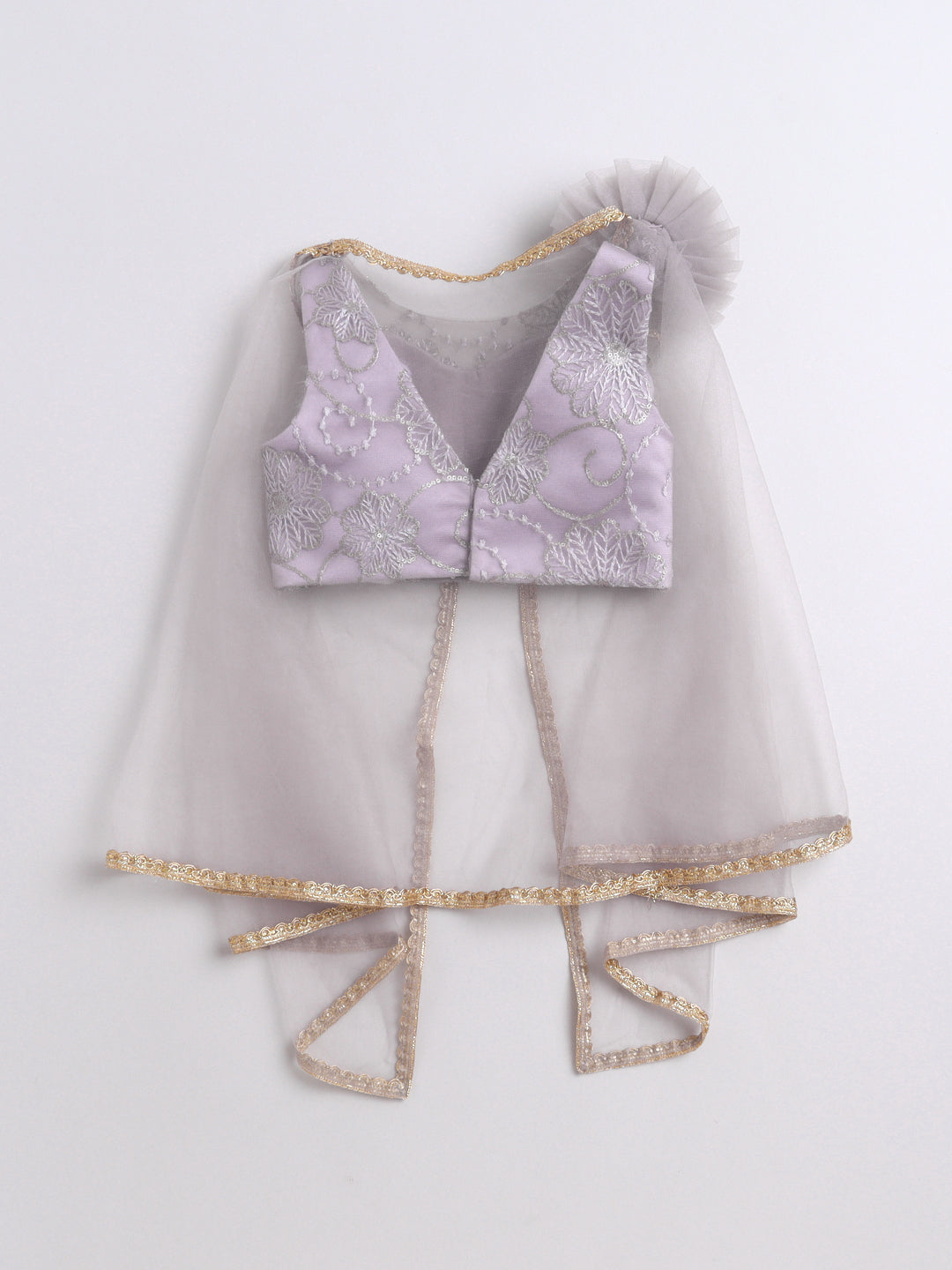 Lavender Net Embroidered Lehenga Choli Set For Girls